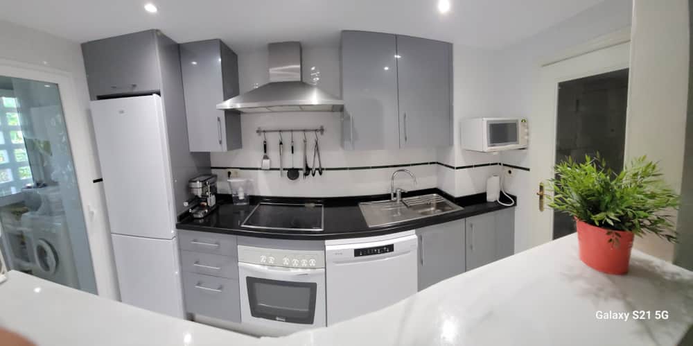 The apartment is modern and has recently been furnished. A modern kitchen with fresh appliances is perfect for a family holiday: fridge freezer, oven, hob, washing machine, dishwasher, kettle, toaster, coffee grinder/maker and microwave and iron. Our property is great for the social chef as it has a hatch looking out on to the open plan living area with a super entertainment system with SMART TV (with Netflix, Amazon Prime and other apps) receiving ALL European channels and many other languages (200+ European channels) and that all-important high-speed wifi (300 MB). The lounge has patio doors that lead out onto the terrace and private garden for dining or relaxing. Landscaping care included in the rental.
