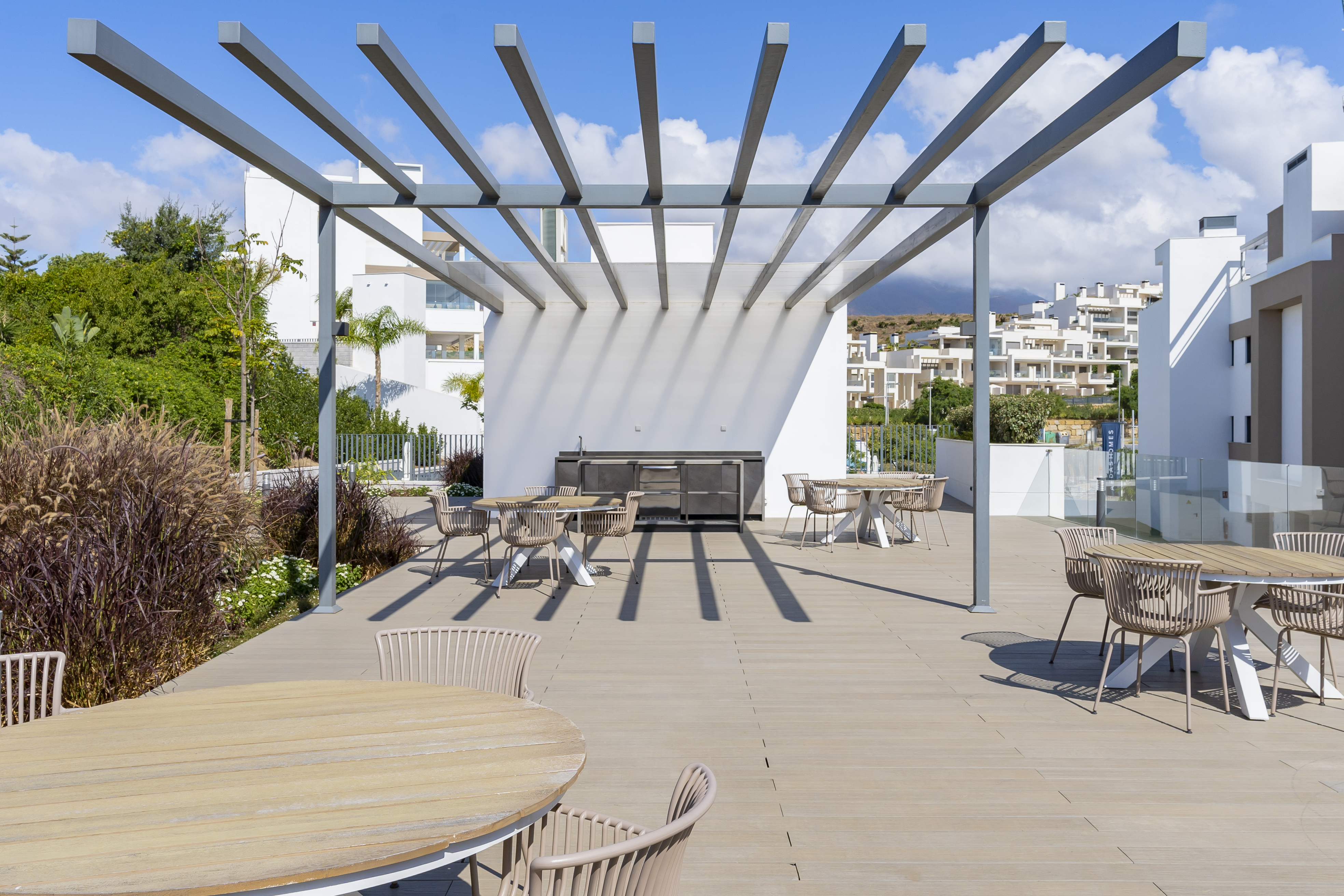 Within a five-minute drive you will find local shops and major supermarkets such as Lidl and Aldi, with a Mercadona opening soon. The new Estepona boulevard, just fifteen minutes on foot, offers a wide selection of restaurants, bars, and shops.