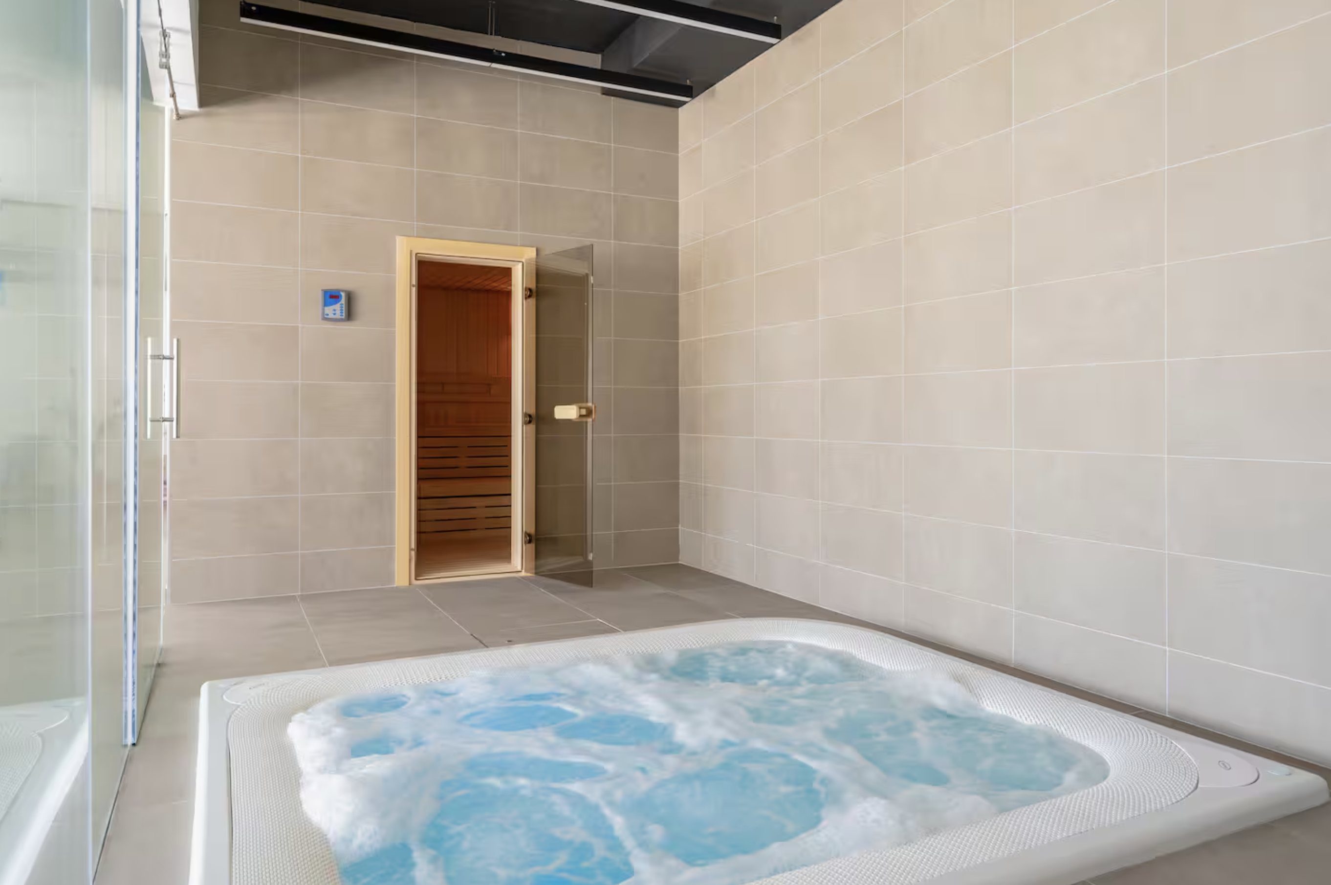 Guests will enjoy all the comforts of home, including air conditioning with both hot and cold settings and Wi-Fi. The community also offers access to beautifully maintained communal areas, including two swimming pools, one for adults and one for children (open all year round), providing a safe and welcoming environment for both adults and children to enjoy. Additional facilities include a sauna, gym, co-working space, and an outdoor picnic area. Please be aware that the gym and jacuzzi are not currently in use.