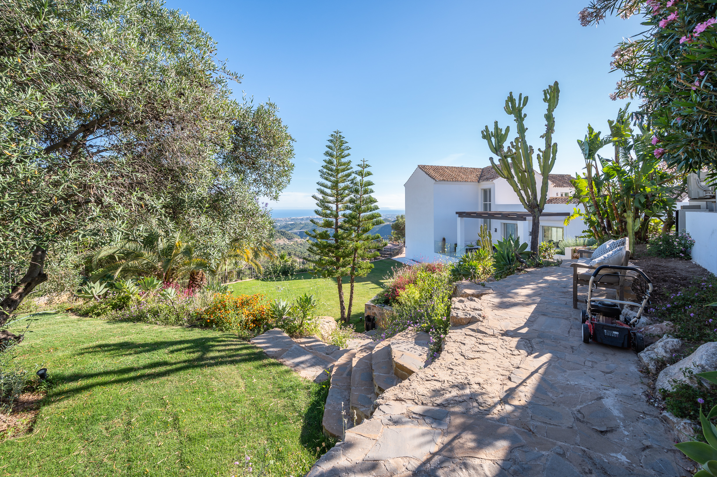 Located within the sought-after Sierra Blanca Country Club, the villa enjoys a privileged position that combines tranquillity with excellent connectivity to Marbella’s most desirable spots. Puerto Banús and the beaches are just 12 minutes away, the nearest supermarket is 10 minutes from the property, and the renowned Puente Romano Resort can be reached in around 15 minutes. Málaga Airport is approximately 50 minutes away, ensuring easy access.