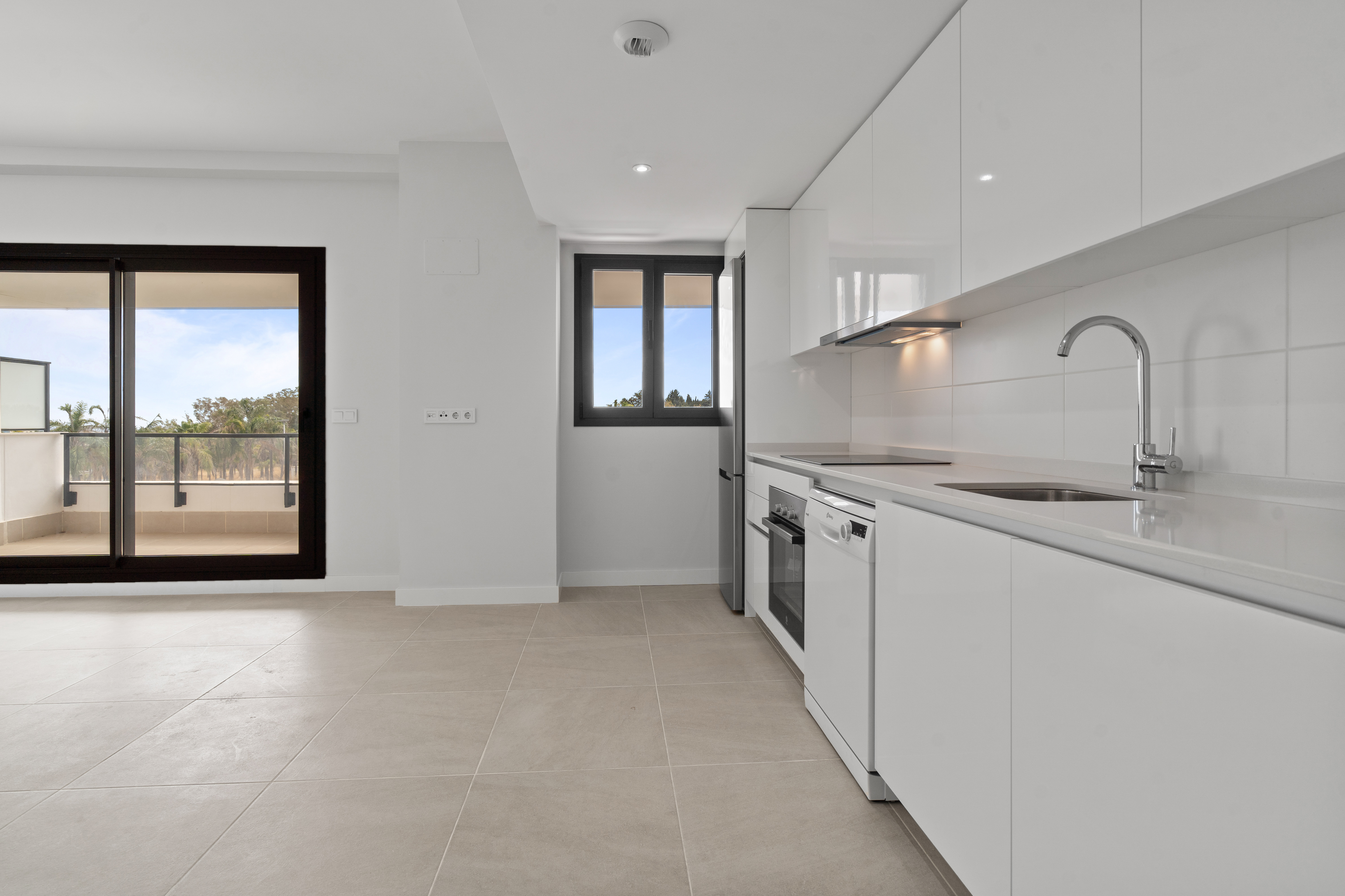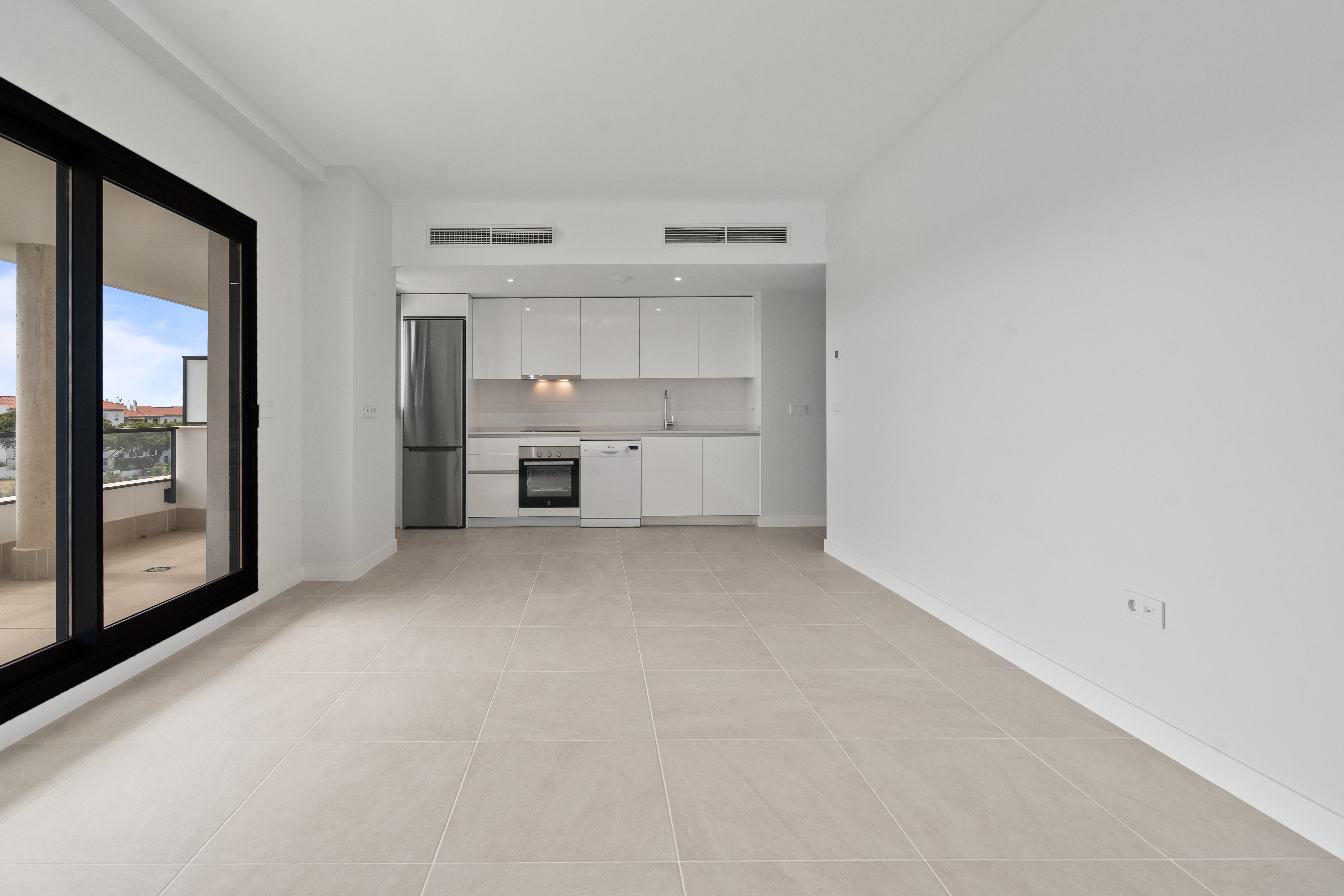 Discover this bright and modern 2-bedroom unfurnished apartment located in the newly built Aranya community in Estepona. With a southeast orientation, the property enjoys abundant natural light throughout the day and uninterrupted views of the beautifully landscaped gardens and community pool area.