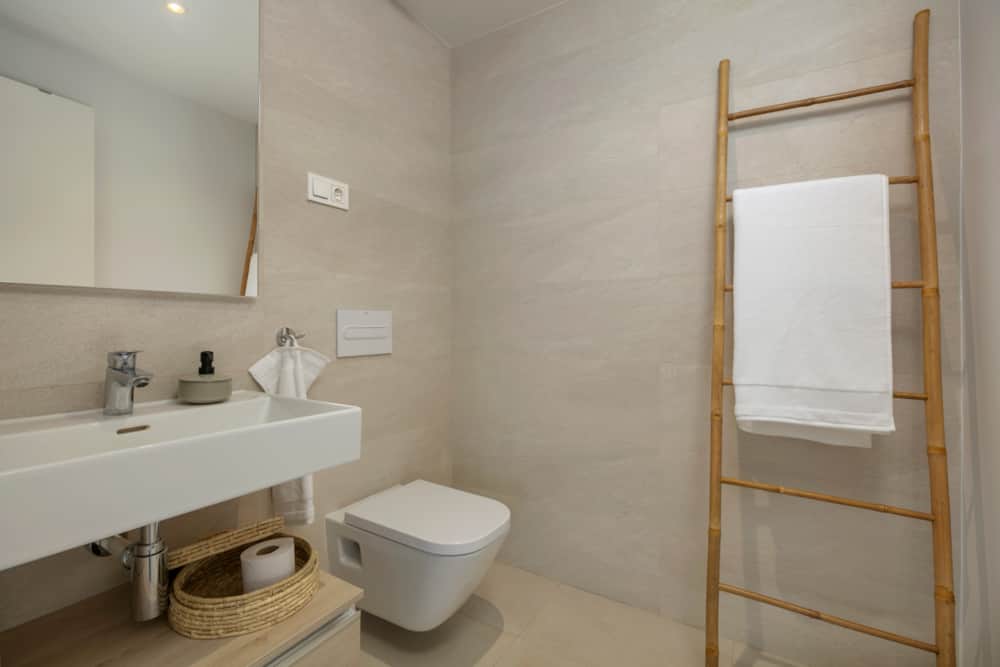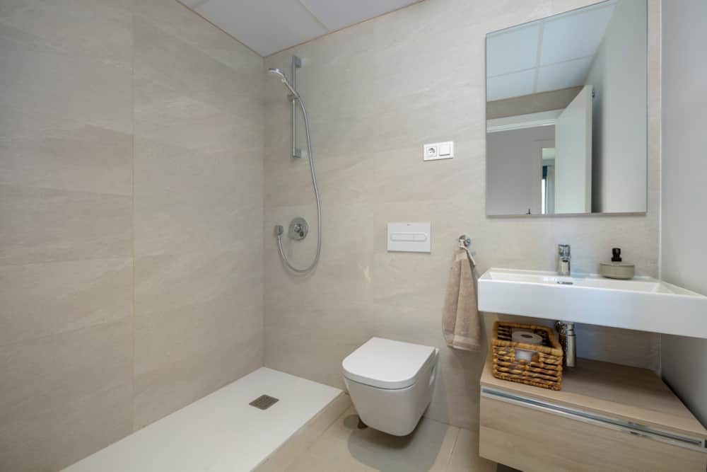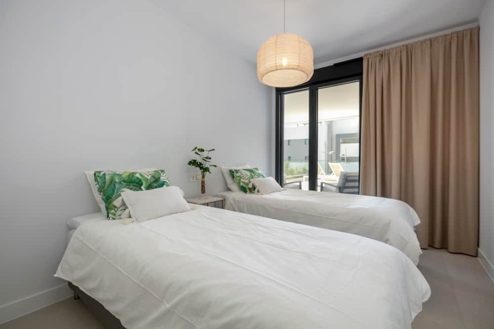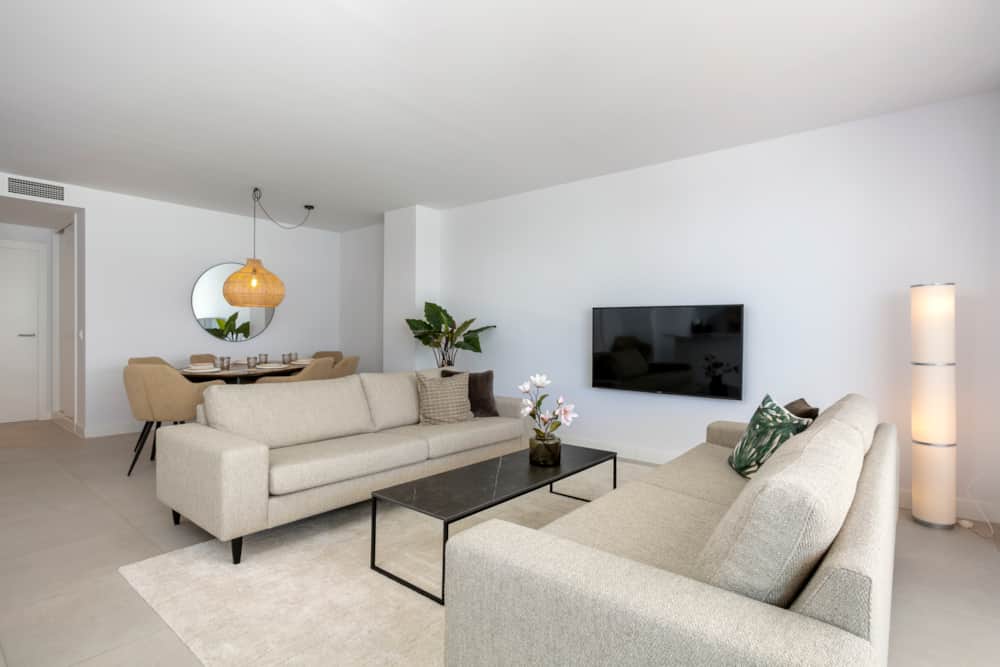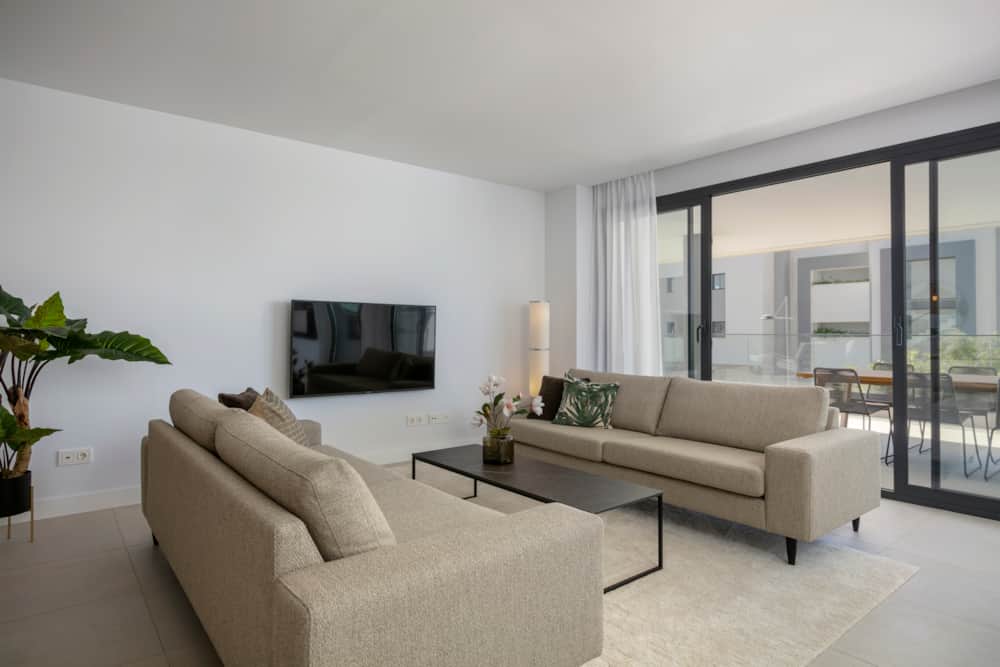 The beach is less than 1km walk from the property, and countless restaurants, bars and shops are within close walking distance. There are also several golf courses within close proximity, as well as padel tennis courts.