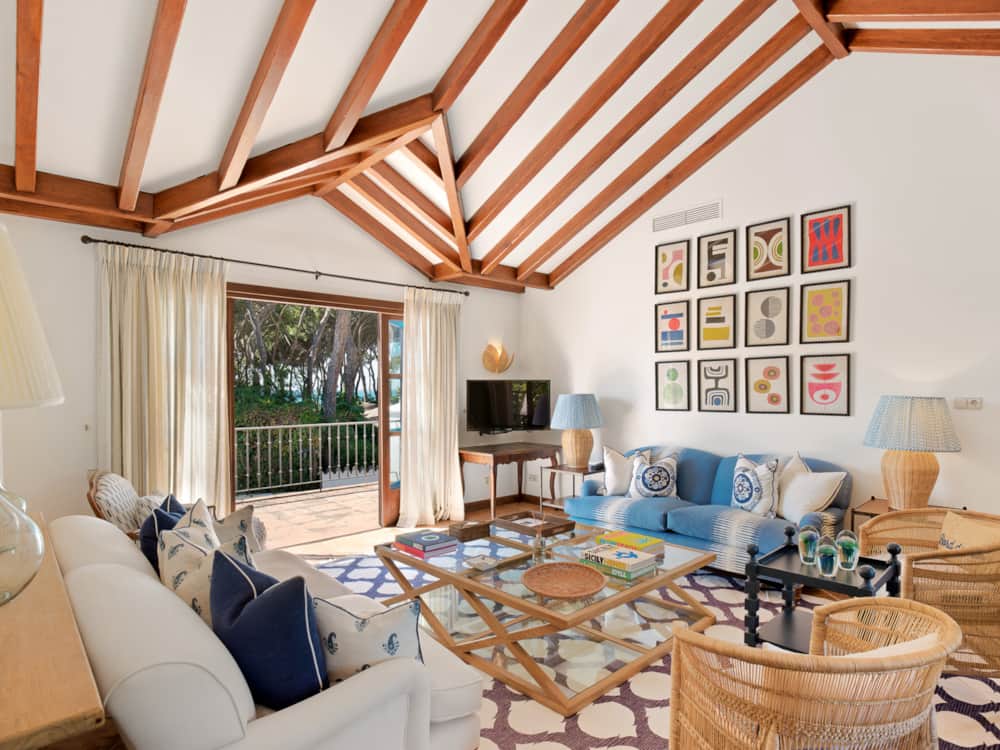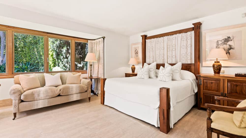 The main house accommodates 14 guests in 7 ensuite bedrooms. The villa also offers a large living room, formal dining area, home gym (complete with weights and various cardio machines), home cinema, wine cellar, full and complete kitchen, and numerous terraces.