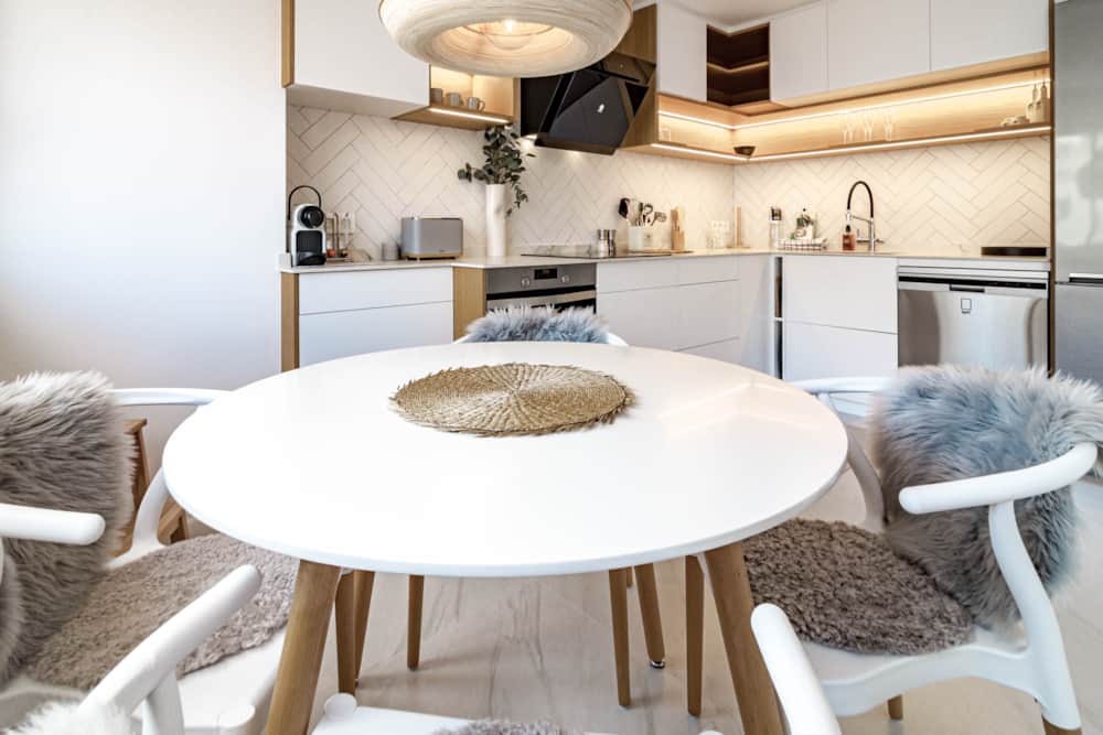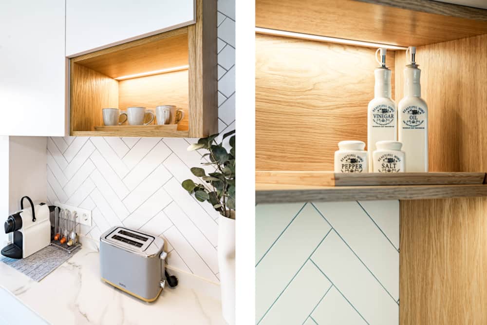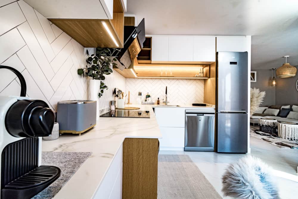 The apartment’s modern and open plan kitchen is a real treat for those guests that enjoy cooking and entertaining. Providing all the utensils and appliances expected of a luxury property, guests will find; a fridge/freezer, washing machine, oven, induction stove and extractor, toaster, kettle, Nespresso coffee machine, and all cutlery, glassware and plates/bowls, etc. guests will also find a coffee table with seating for 4 located in the kitchen.