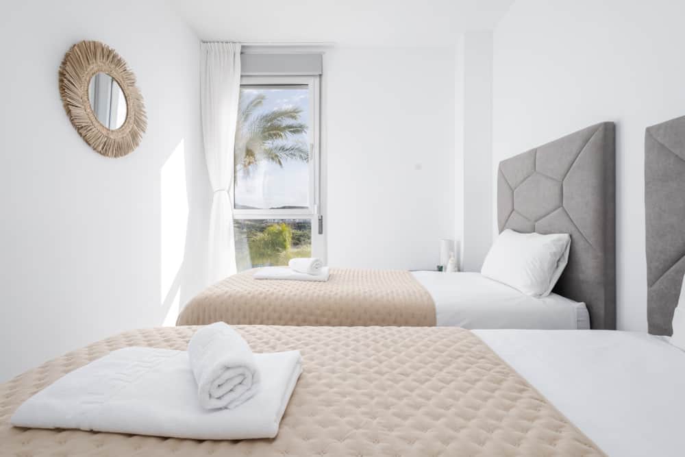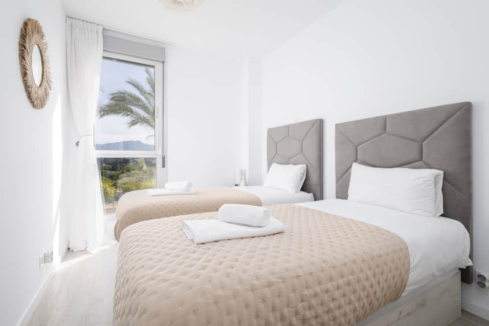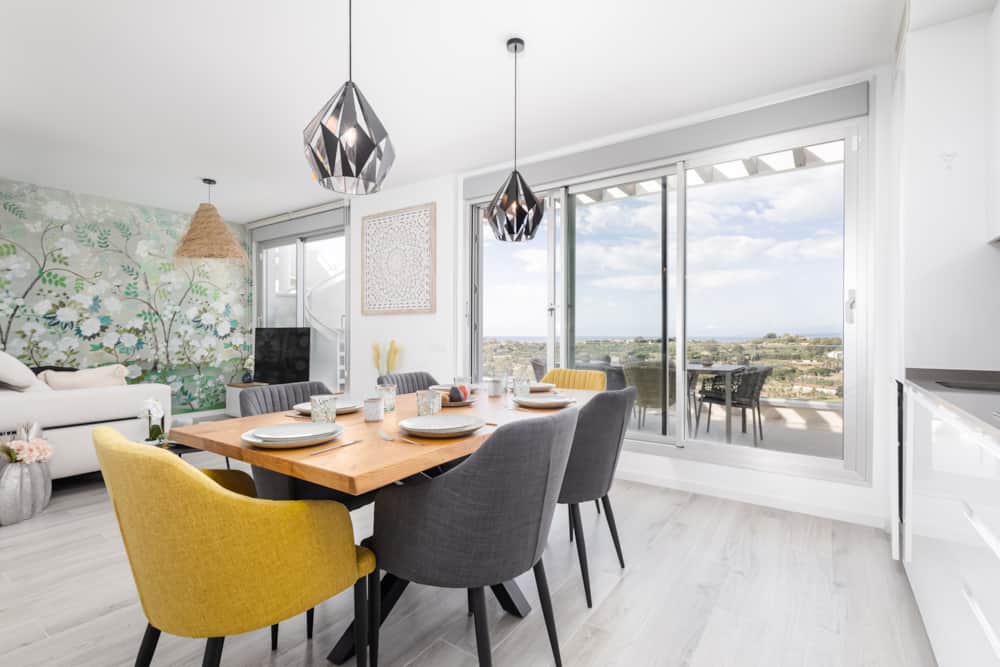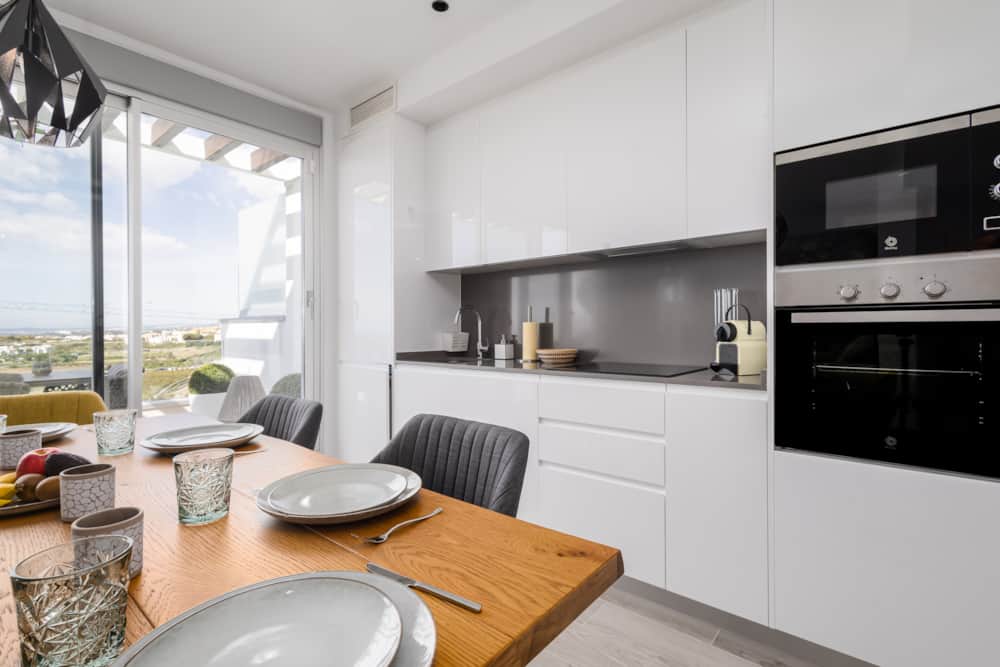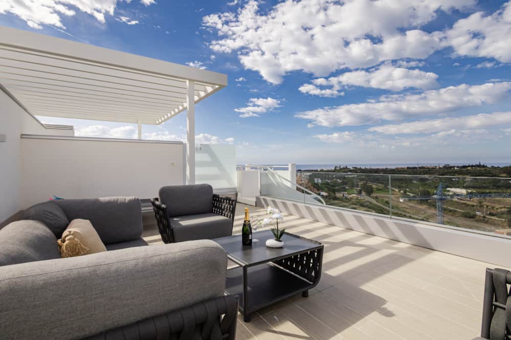 Awesome duplex penthouse apartment in new Oceana Views development. Guests will be greeted with a fresh and stylish 2 bedroom apartment, well equipped with everything needed for a perfect holiday on the coast. The community faces southwest, offering stunning views of the sea and surrounding mountains, and the fantastic community swimming pool has an ‘infinity edge’ looking out towards the sea. Oceana Views is less than 10 minutes from the beach, and just 15 minutes from Puerto Banús and Estepona.
