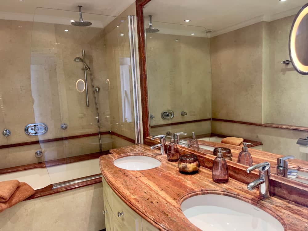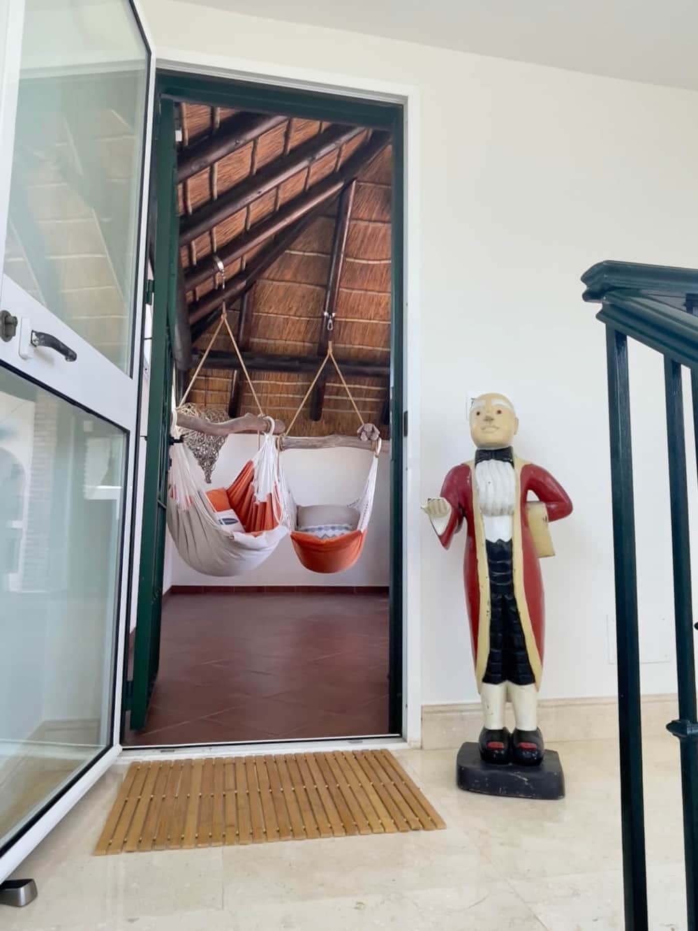 The top floor of the property really is quite special. Guests have access to a private rooftop terrace that commands the entirety of the townhouse’s top floor. With a mixture of completely exterior and covered exterior spaces, guests can fully enjoy the stunning views and spaces offered. Clients will find sun loungers in the sun, and chillout hanging chairs, another alfresco dining area, and full size drinks fridge, all beneath a beautiful pointed wooden roof. The views from here cannot be exaggerated, they really are spectacular.