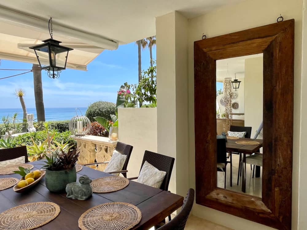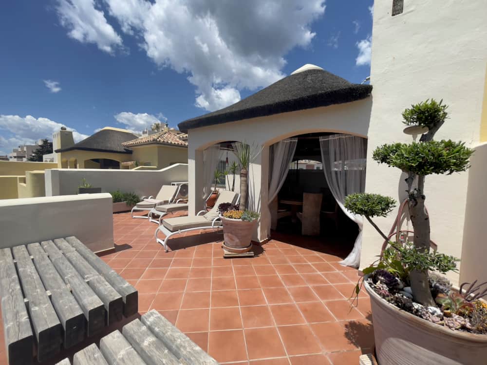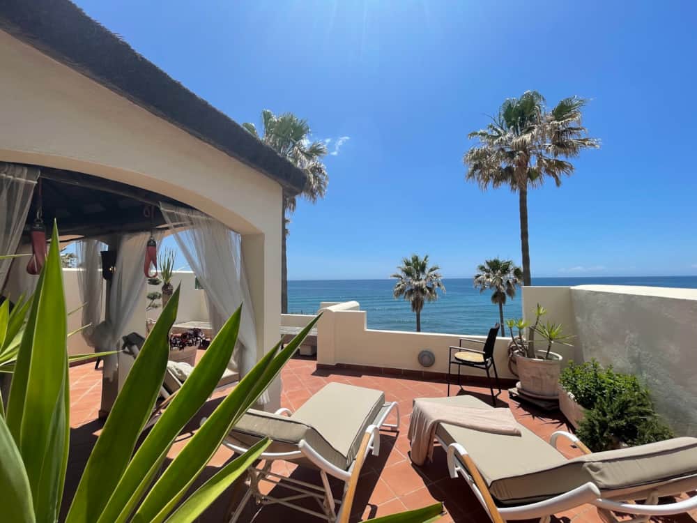 Gorgeous 4 bedroom townhouse with garden and several terraces, located frontline on the beach! The property, spread over 3 levels, offers guests 4 bedrooms, 3 bathrooms, an open plan kitchen, living room, exterior terraces with uninterrupted sea views, a private garden, and access to a communal swimming pool. The ‘Garden Beach’ community is situated just 5 minutes from Estepona and 15-20 minutes from the world famous Puerto Banús and town of Marbella.