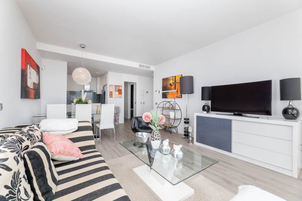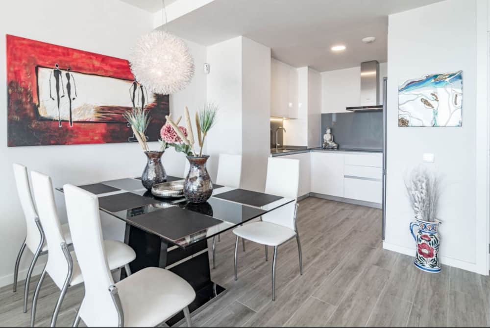 The apartment has centralised air conditioning (hot and cold) in all rooms, strong fibre optic WIFI reachable throughout the property, and 1 private underground parking space in the garage. The urbanisation is fully gated and included in the rental of the apartment is access to the complex’s swimming pool.